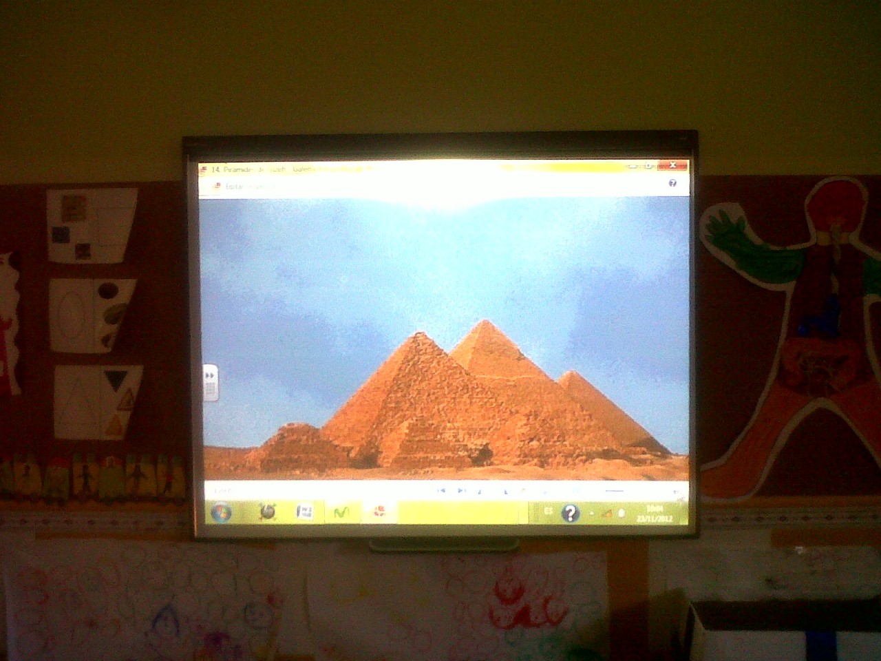 En clase usamos muchos días la pizarra digital para muchas cosas, como por ejemplo: para pasar imágenes de importantes monumentos del mundo para que los niños vayan aprendiendo cultura; ambién las utilizamos para hacer juegos en los que ellos interactúan con el y aprenden tocando la pantalla; también alguna vez se ha usado para poner alguna película del ordenador de la profesora.